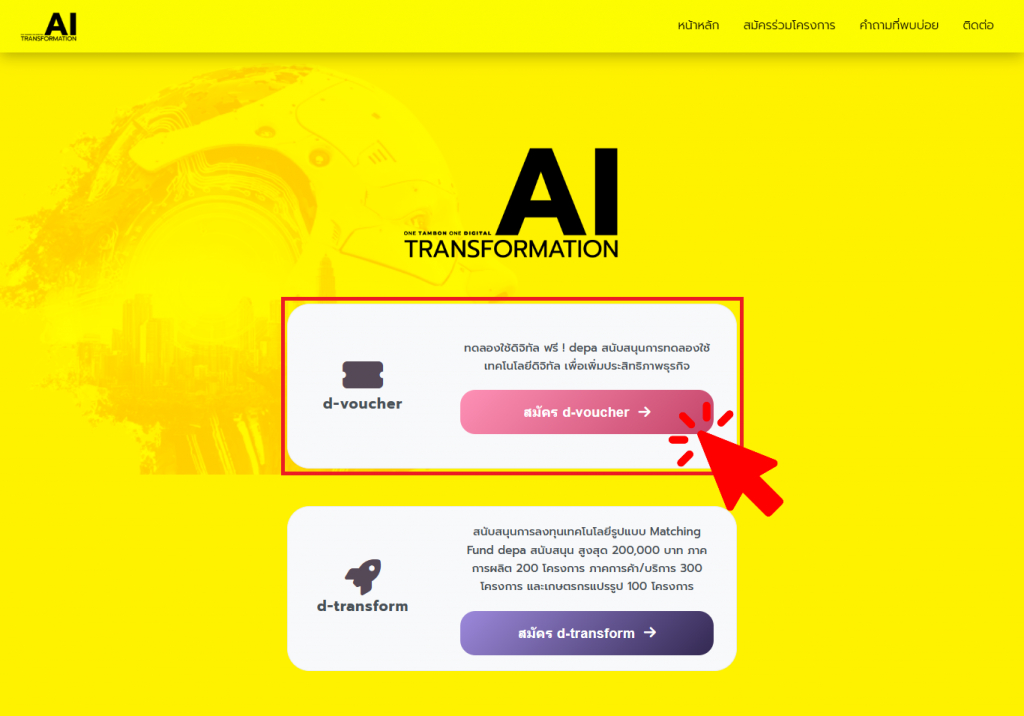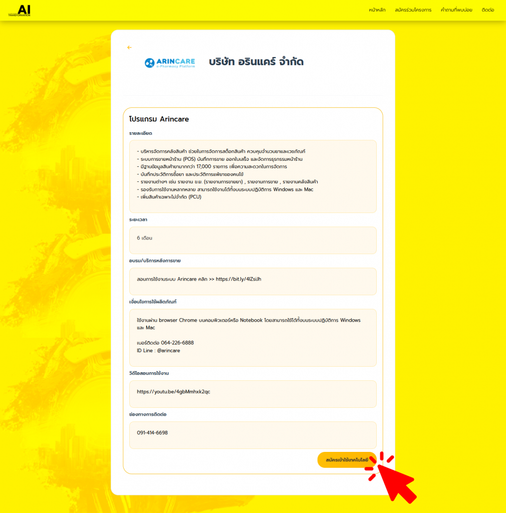ขั้นตอนสมัครโครงการ AI Transformation (d-voucher) x Arincare