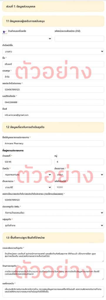 1.1 ข้อมูลของผู้ขอรับการสนับสนุน