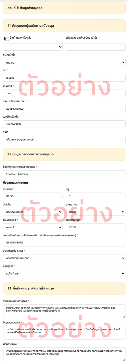 - กรอกข้อมูลชื่อร้านหรือบริษัทเป็นภาษาไทย ให้ตรงกับเอกสารใบทะเบียนพาณิชย์ ใบอนุญาตขายยา หรือ หนังสือรับรองบริษัท